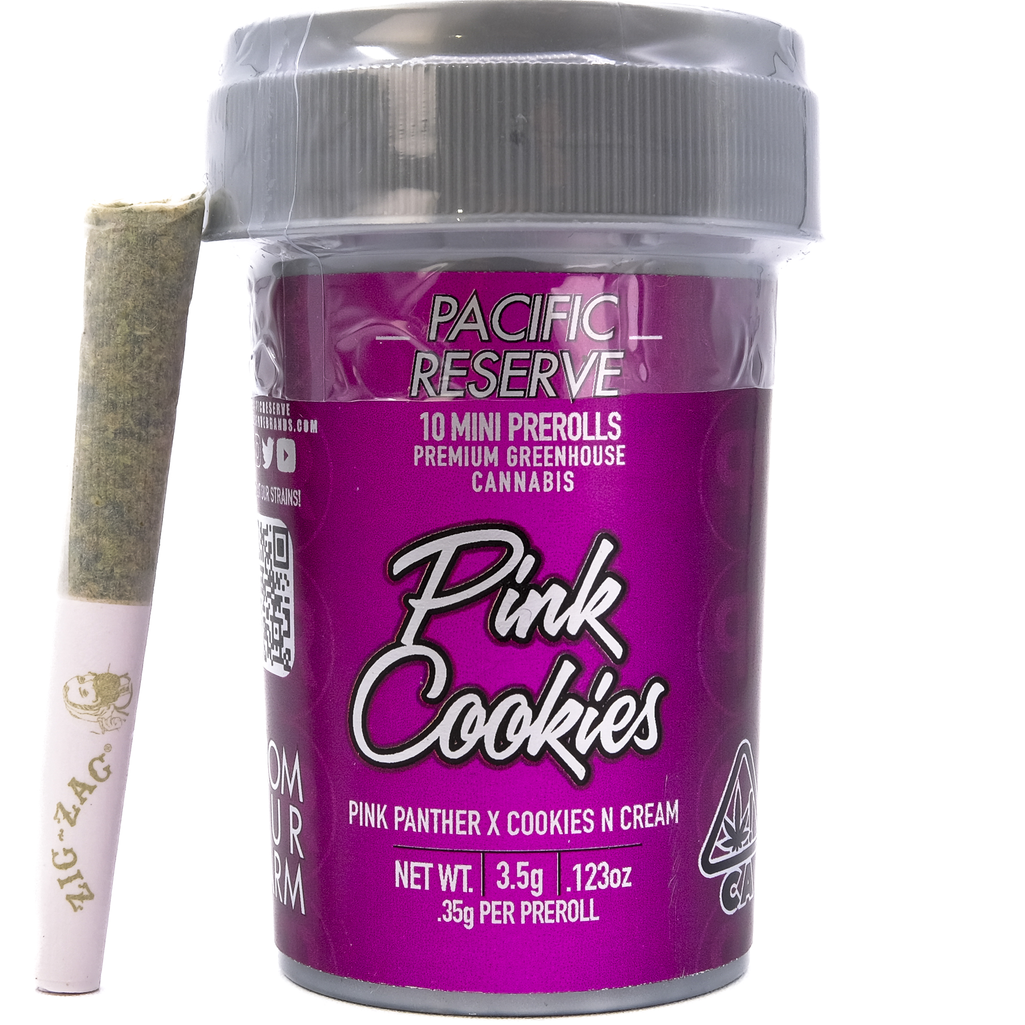 Experience premium cannabis with this Pink Cookies 3.5g 10 Pack Mini Pre-Rolls, 10-pack of pre-rolls. Each 0.7g pre-roll is expertly Dutch rolled with premium flower, delivering a smooth draw and consistent burn that showcases the quality and craftsmanship behind every Pacific Reserve™ product.