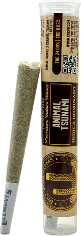 Unwind and relax with Animal Tsunami 1g Pre-Roll by Rio Vista Farms™. Rio Vista Farms™ is our indoor flower grown, packed, and distributed by us and only us. We pride ourselves on quality cannabis at a fair price. Our indoor flower is grown with organic soil and nutrients. Hand-trimmed and brought to the customer with farm-direct prices. Farm-direct pricing eliminates the middleman, so we can bring our exotic genetics from seed to shelf at a great price. Craft Cannabis Cultivation.