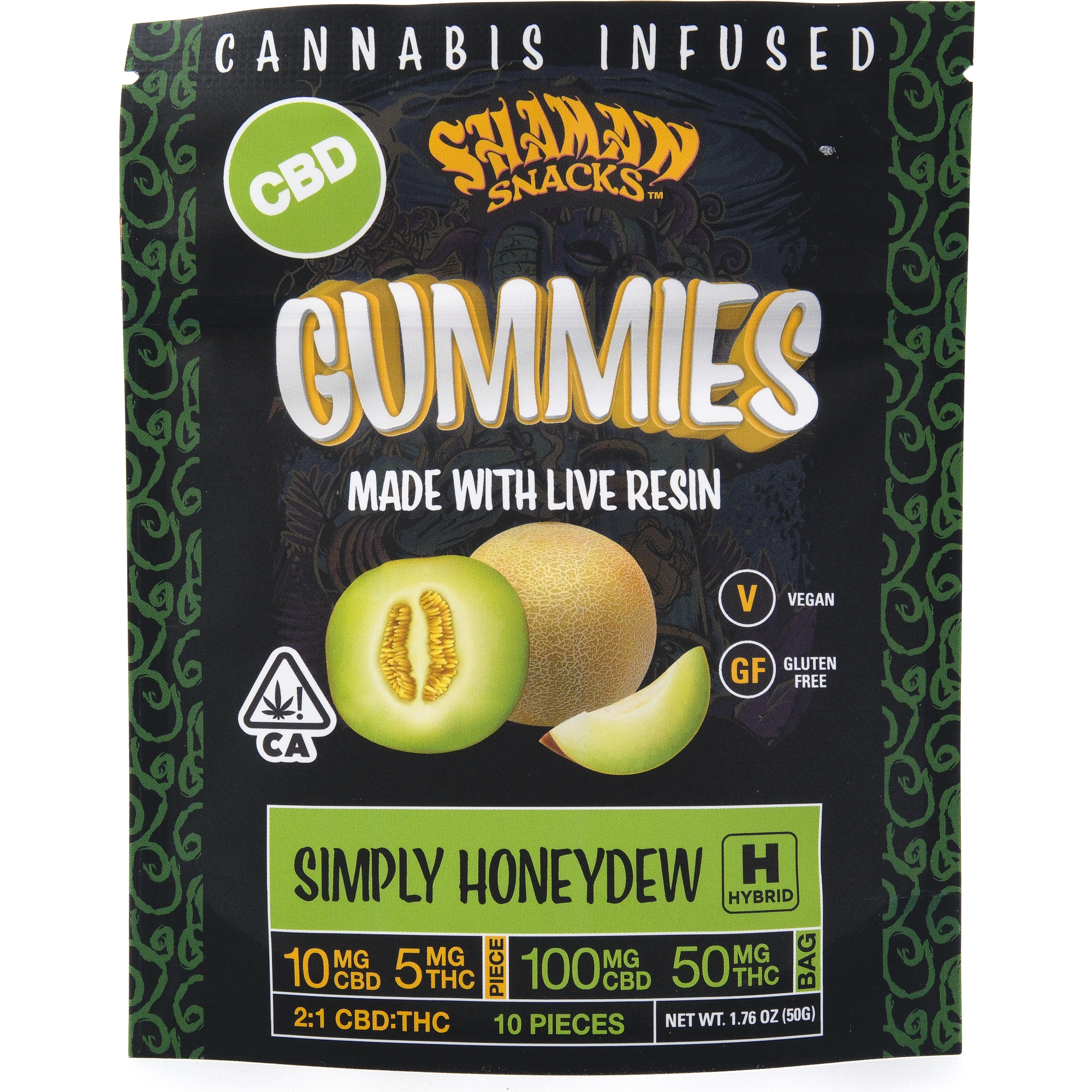 Simply Honeydew 2:1 150mg 10 Pack Gummies - Shaman Snacks