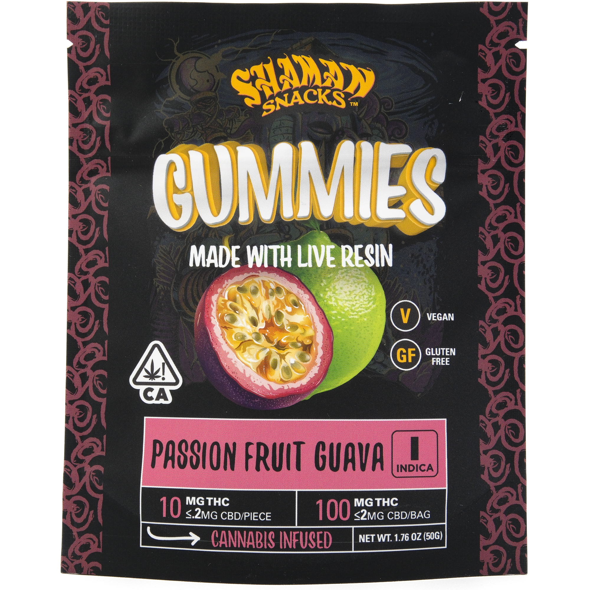 Passion Fruit Guava 100mg 10 Pack Live Resin Gummies - Shaman Extracts
