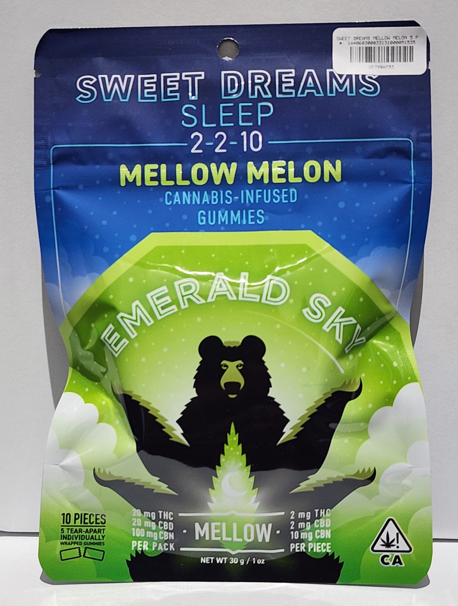 Discover Sweet Dreams Mellow Melon Sleep 2:2:10 140mg 5 Pack Gummies by Emerald Sky™. Elevate your experience.