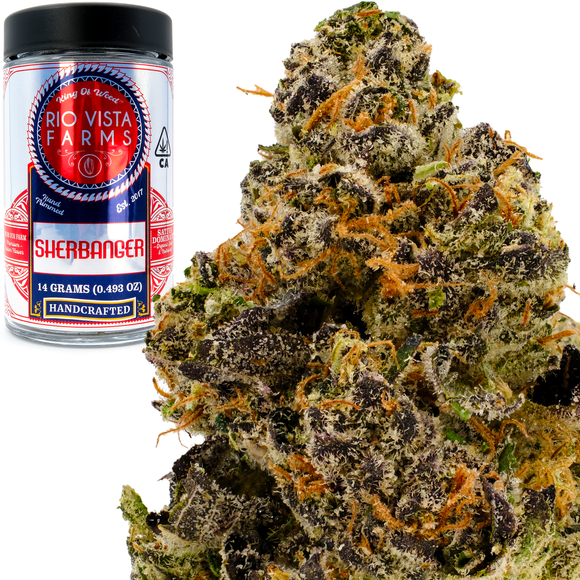 Elevate your experience with Sherbanger 14g Jar by Rio Vista Farms™. Rio Vista Farms™ is our indoor flower grown, packed, and distributed by us and only us. We pride ourselves on quality cannabis at a fair price. Our indoor flower is grown with organic soil and nutrients. Hand-trimmed and brought to the customer with farm-direct prices. Farm-direct pricing eliminates the middleman, so we can bring our exotic genetics from seed to shelf at a great price. Craft Cannabis Cultivation.
