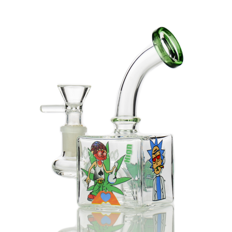 6" Cube Water Pipe Glow In The Dark with 14mm Male Bowl